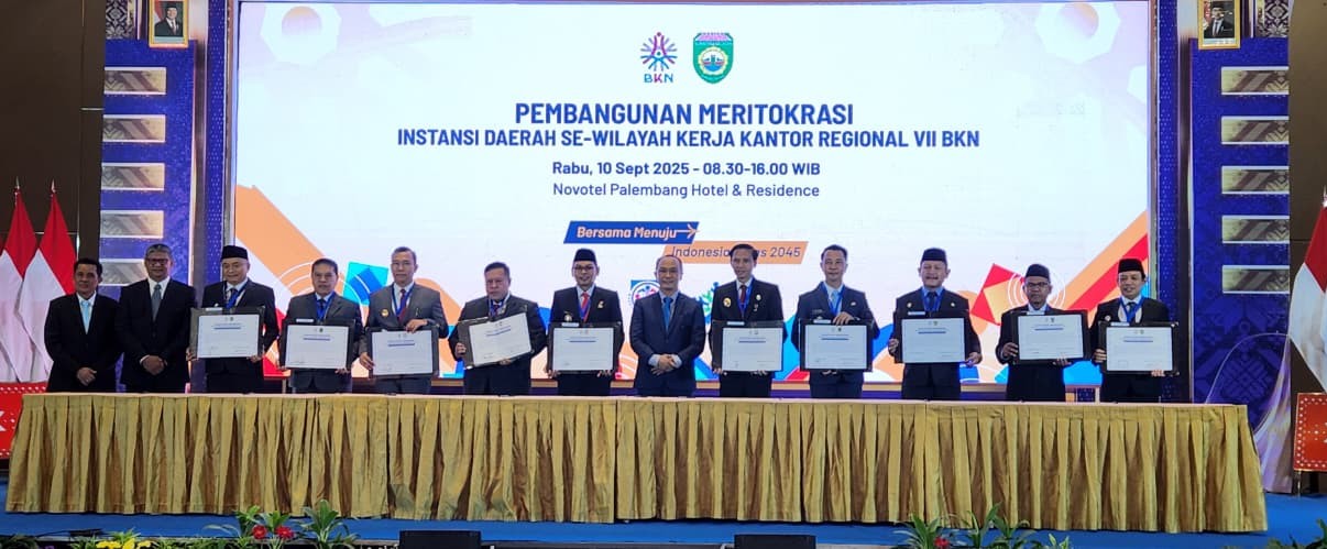 BKPSDM – Bupati Bengkulu Tengah Drs. Rachmat Riyanto, S.T., M.AP., menghadiri kegiatan Pembangunan Meritokrasi Instansi Pemerintah dan Pembekalan Tim Manajemen Talenta Instansi Se-Wilayah Kerja Kantor Regional VII BKN, bertempat di Grand Ballroom Hotel Novotel Kota Palembang Provinsi Sumatera Selatan. Selasa (10/09/2025).