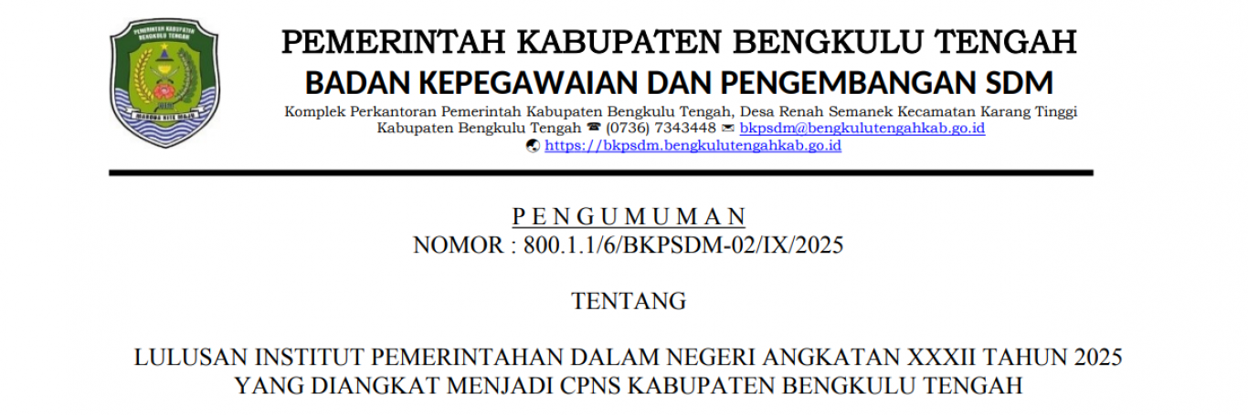 Pengumuman Lulusan IPDN Yang Diangkat CPNS Tahun 2025